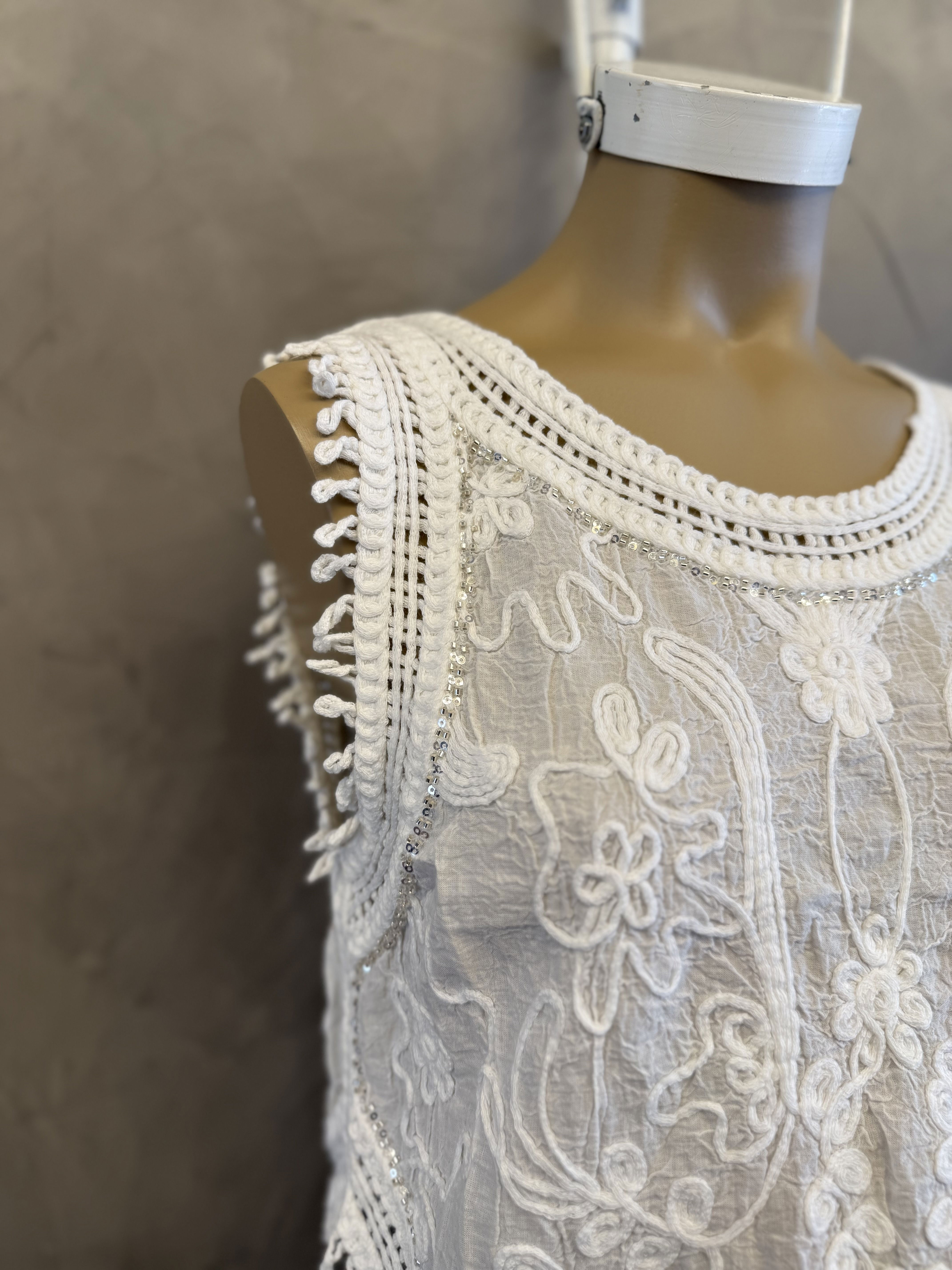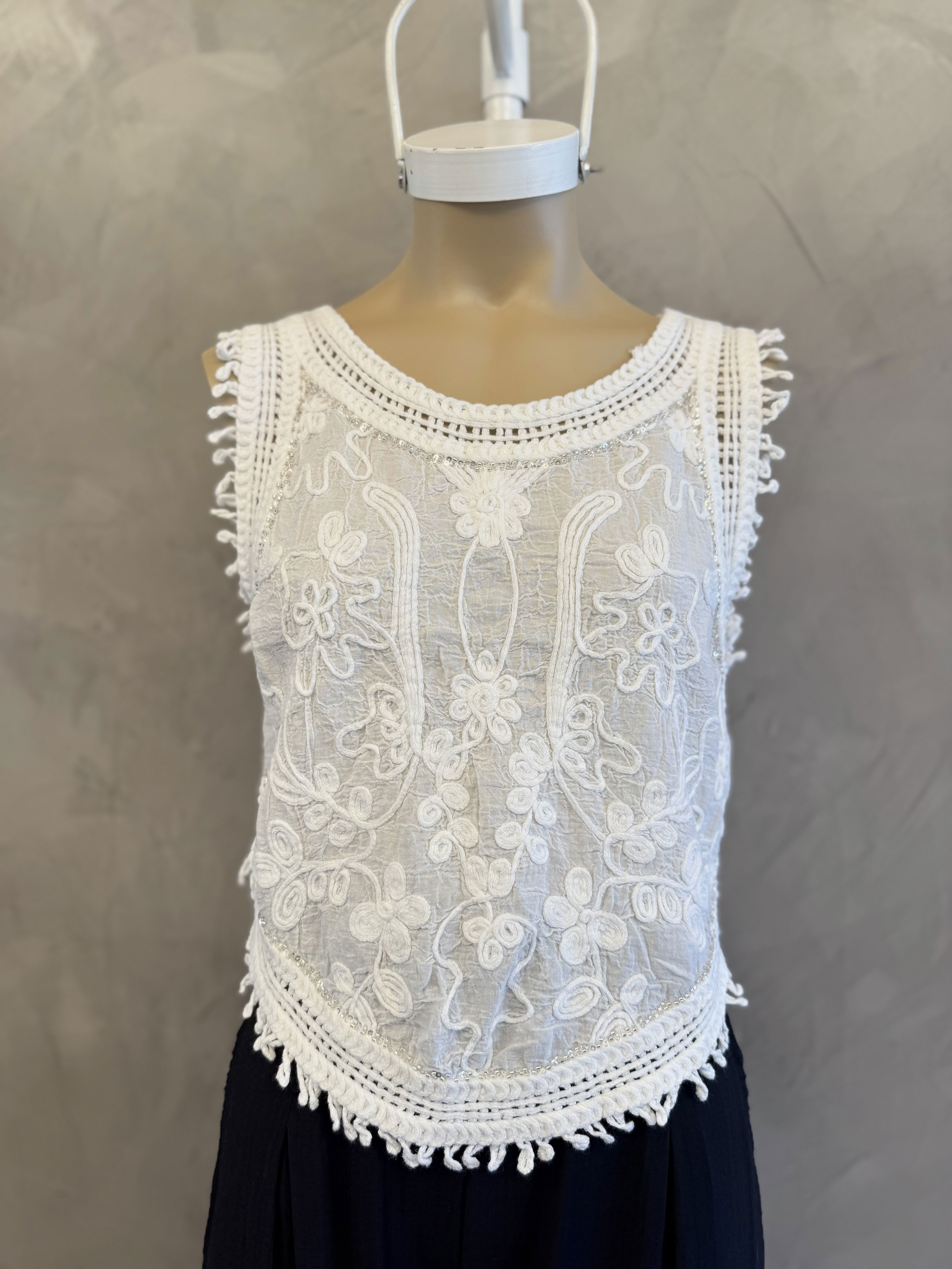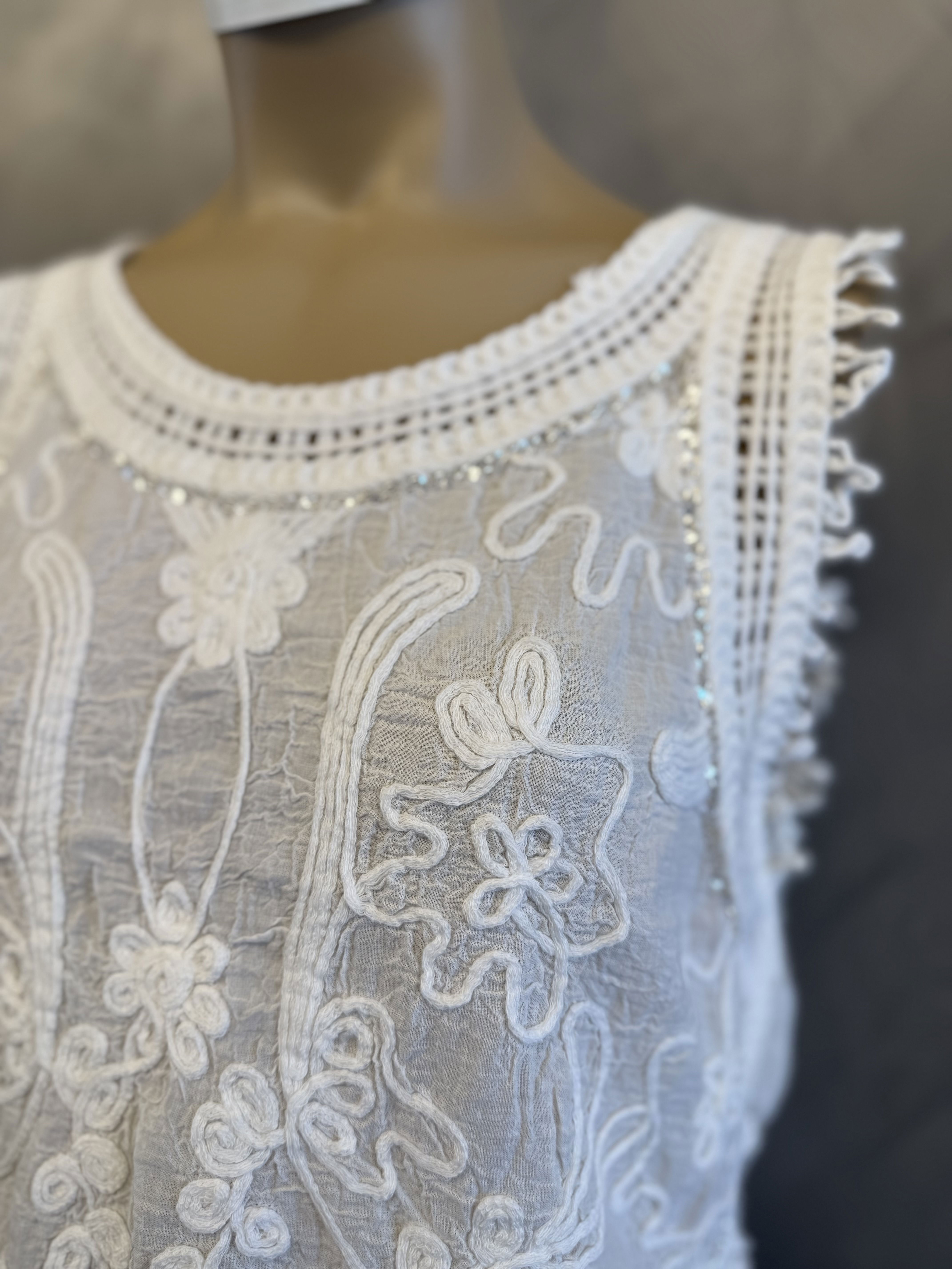 top broderie con detalles de lentejuelas. Broderie combinado. IMPORTADO