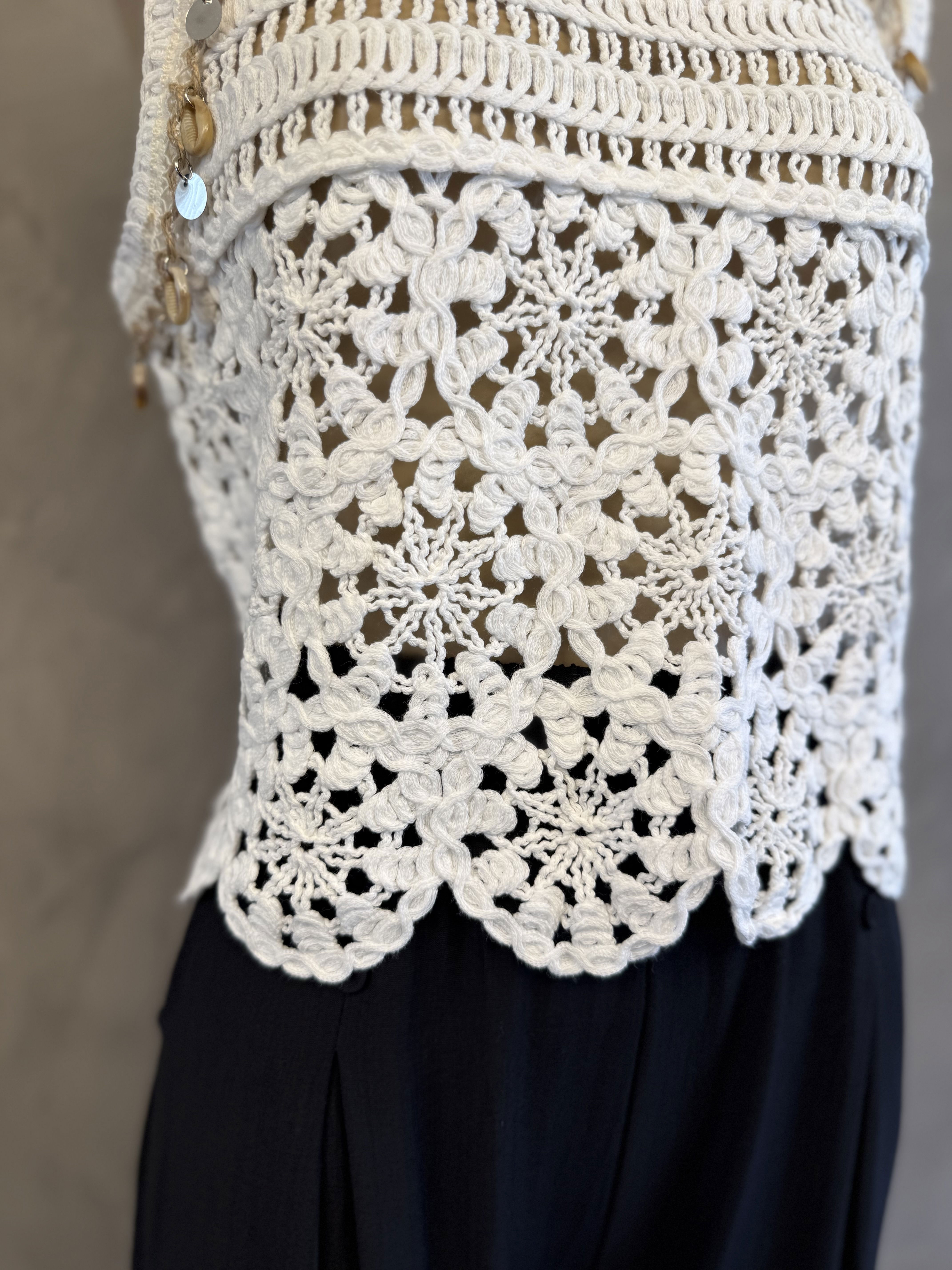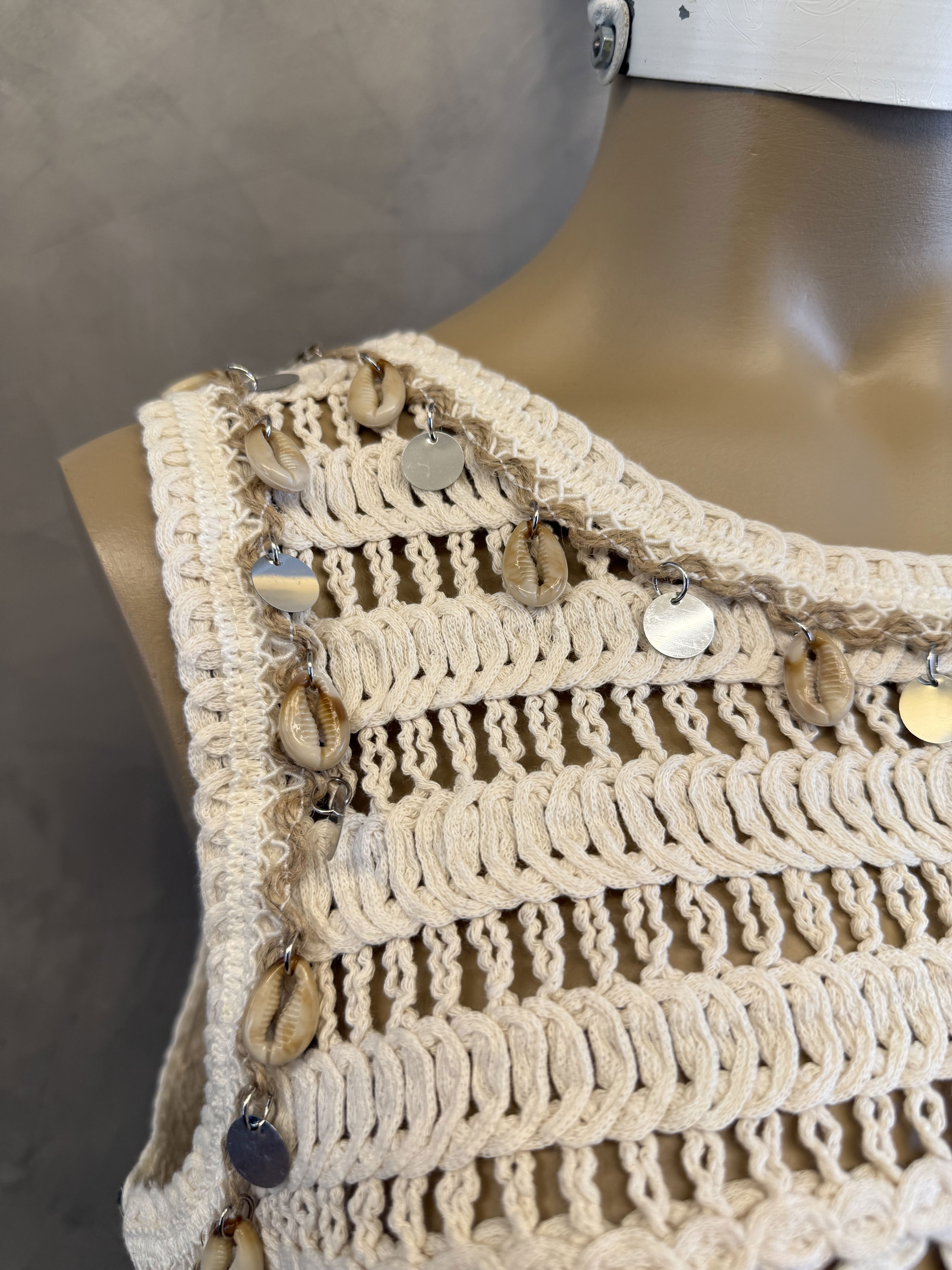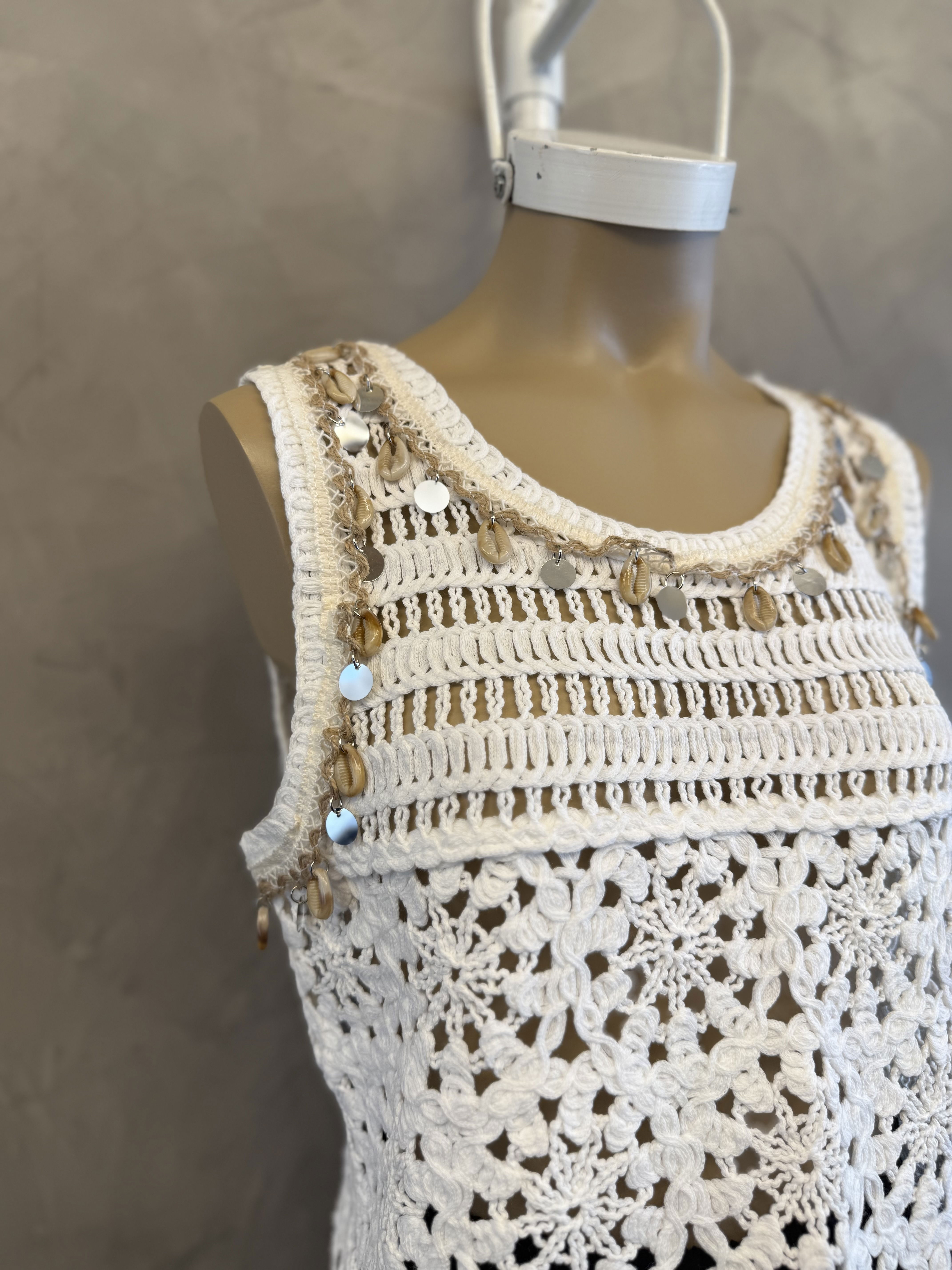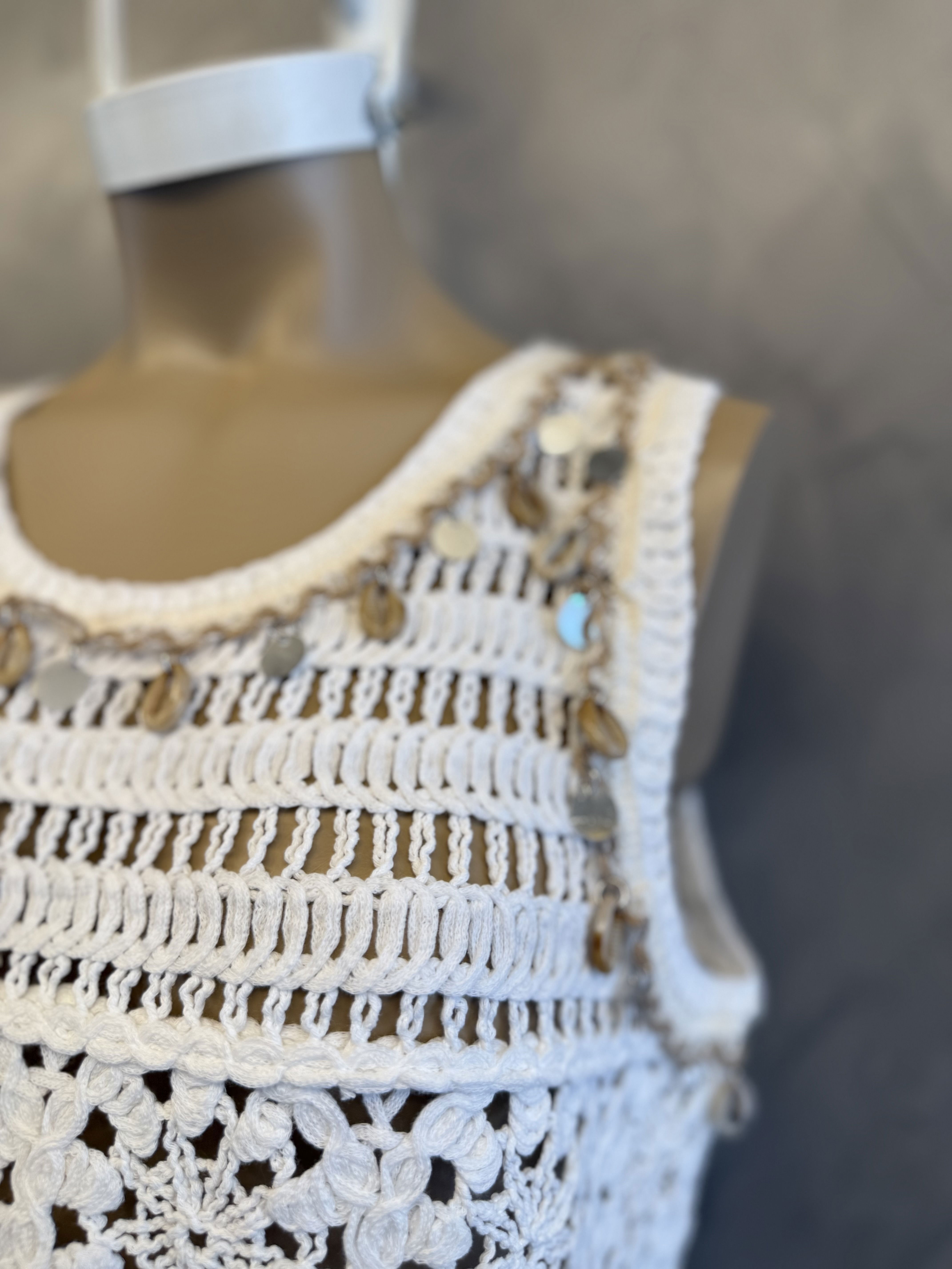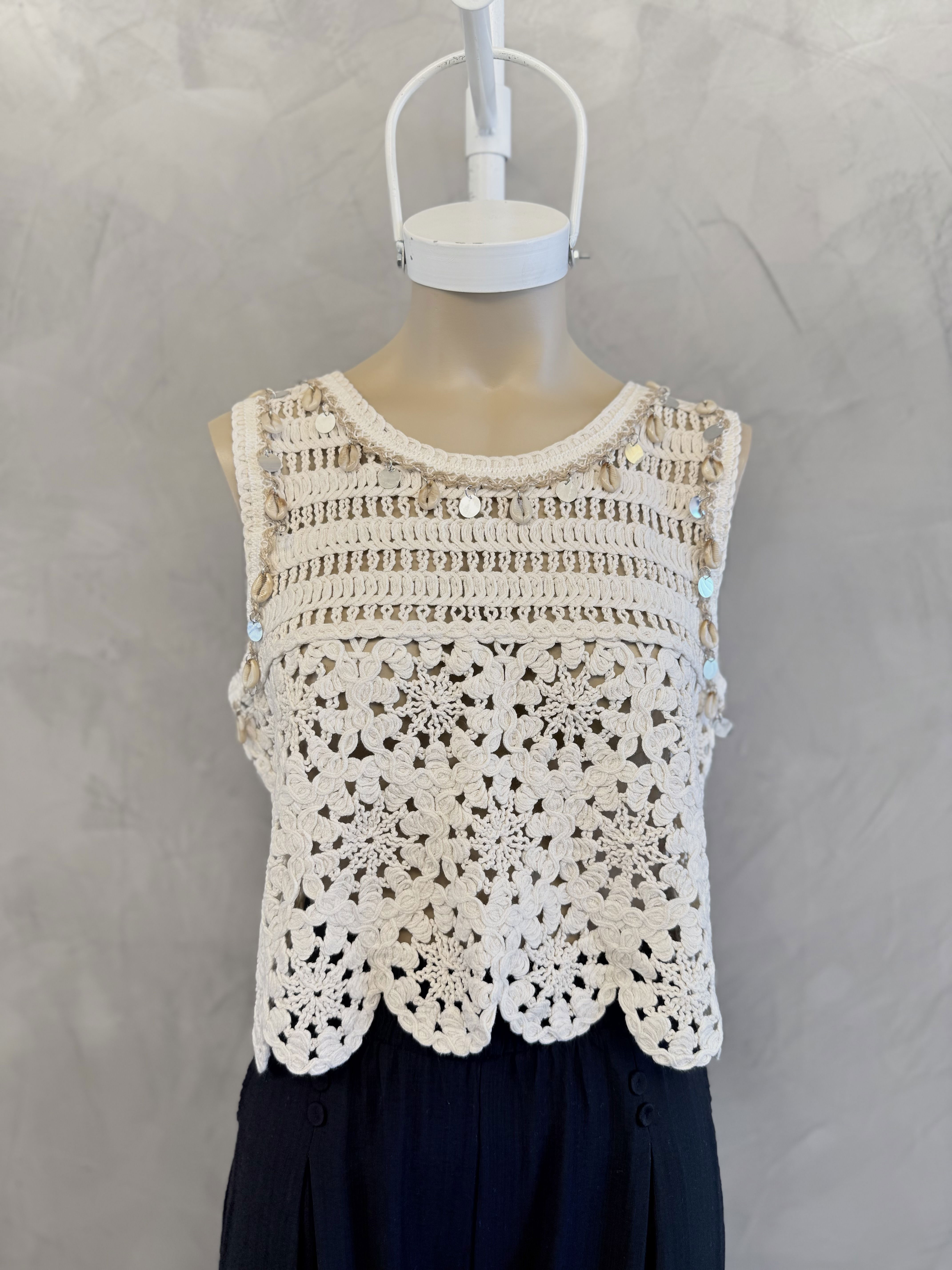 Top tela broderie combinada, con dijes estilo playero. Importado, new drop SS26