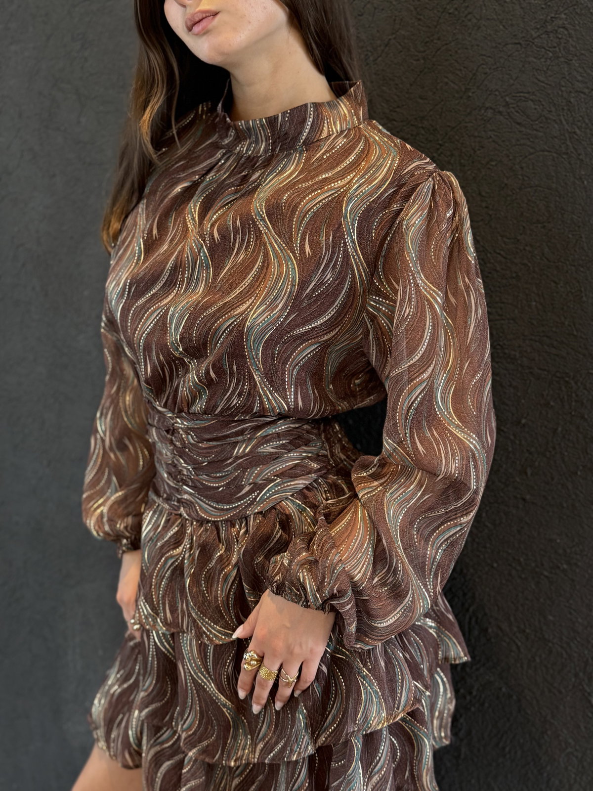 Vestido estilo boho, de calidad importado. Detalle y textura unica. Con boton detras del cuello para mejor forma de cuello americano.