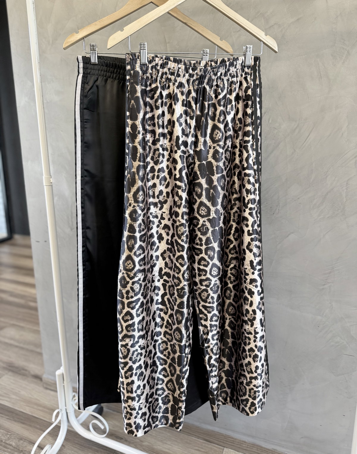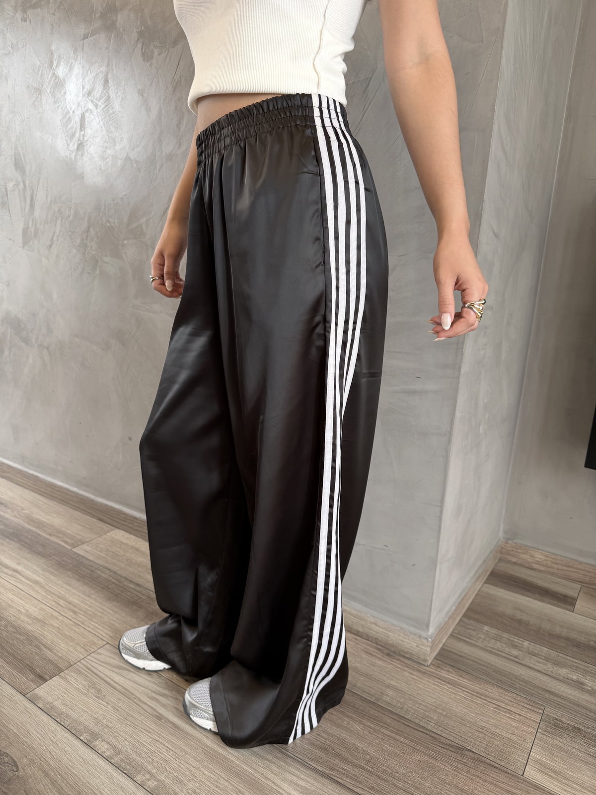 Pantalon de tela saten, con 4 rayas al costado. Hermosa caida y corte. Calidad importado premium.