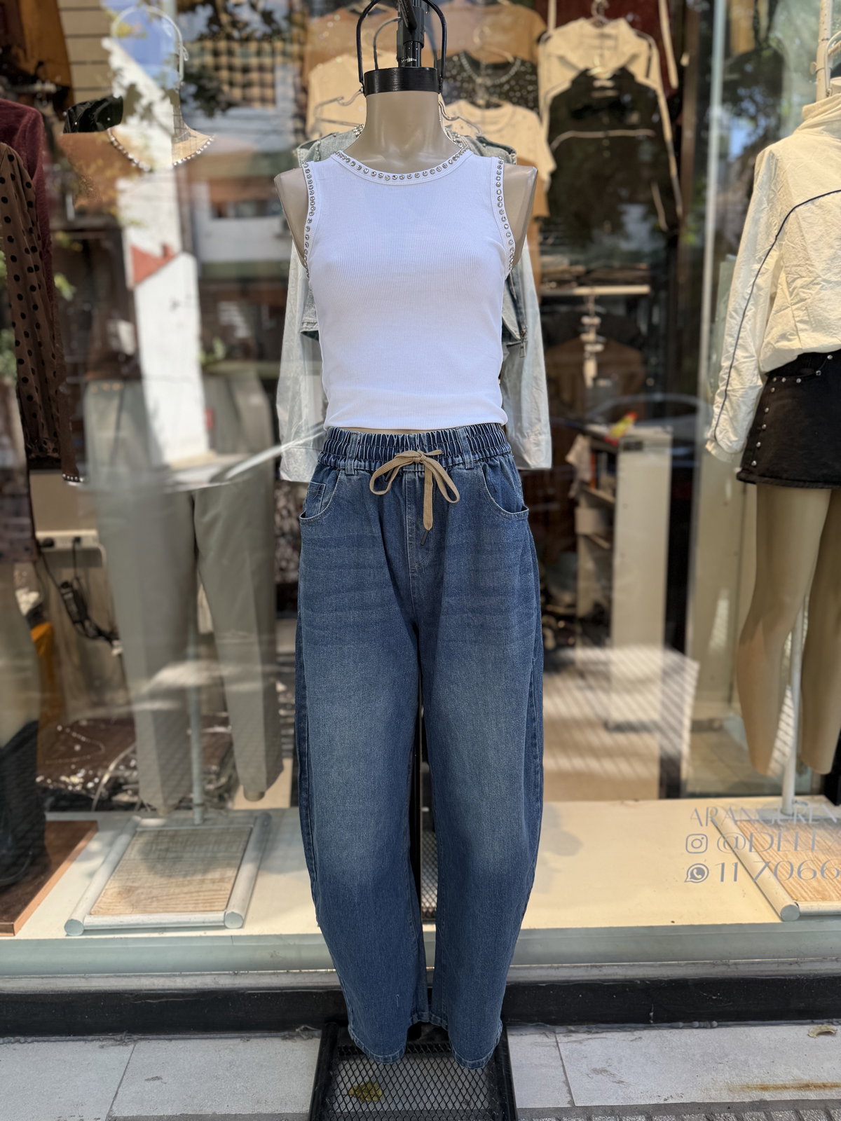 Pantalon de jean, con cordon y elastico. Calidad premium, importado! Corte semi baggy