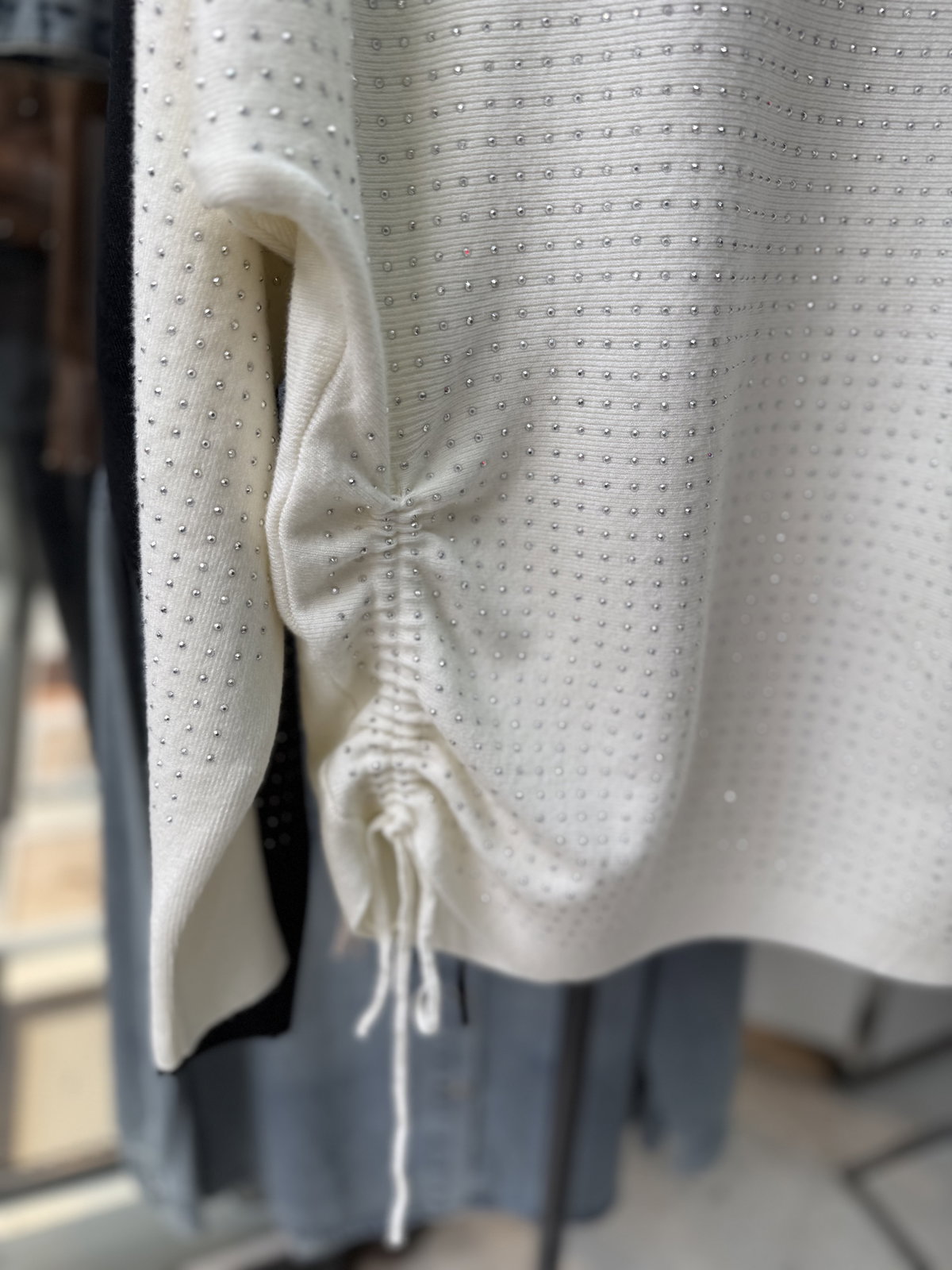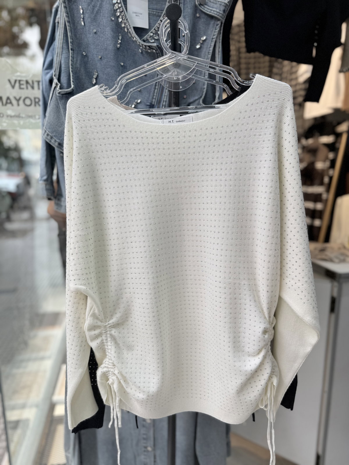 Sweater importado con tachas y frunce para atar, semi bote
