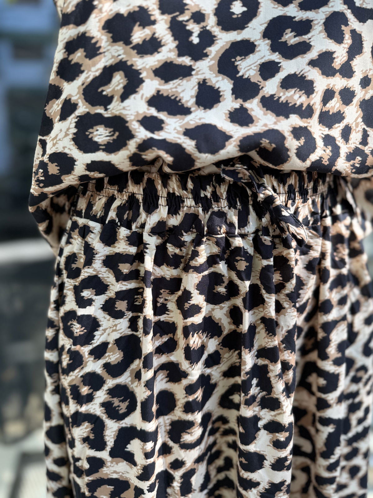 Pollera con elastico y tira para atar, tela animal print. Calidad premium