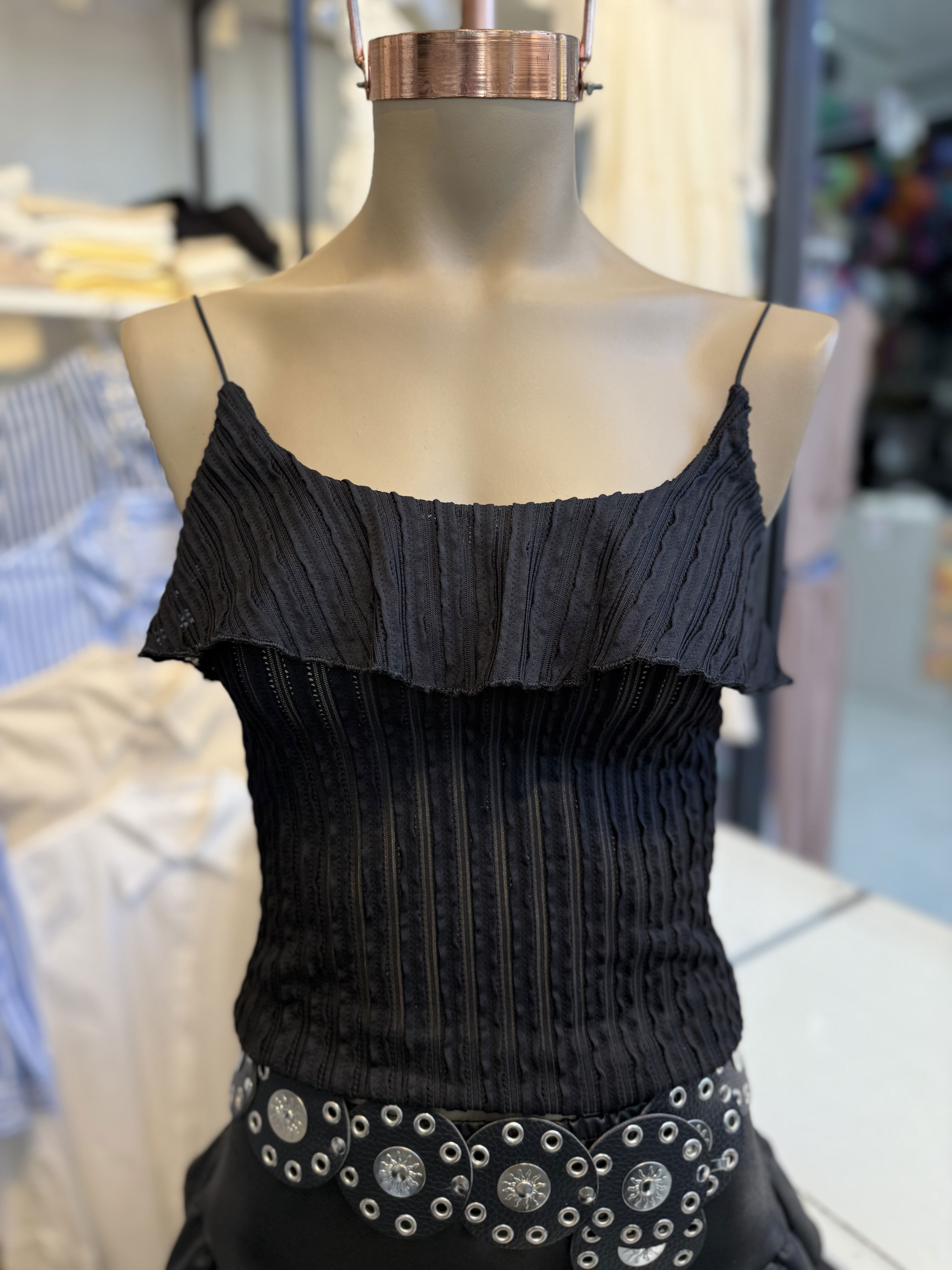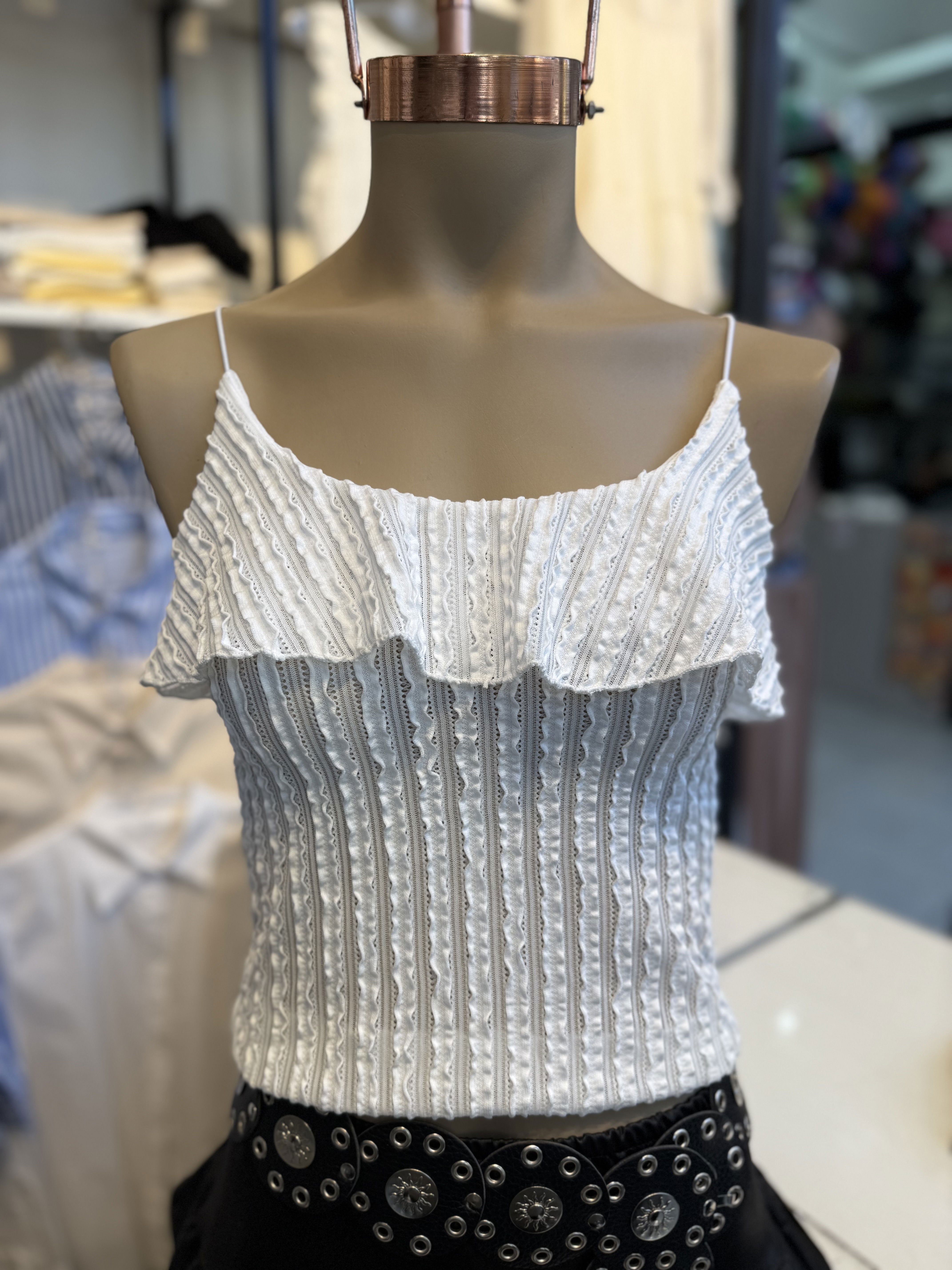 Top tela broderie SS26, con volado. Calidad Premium, perfectas terminaciones