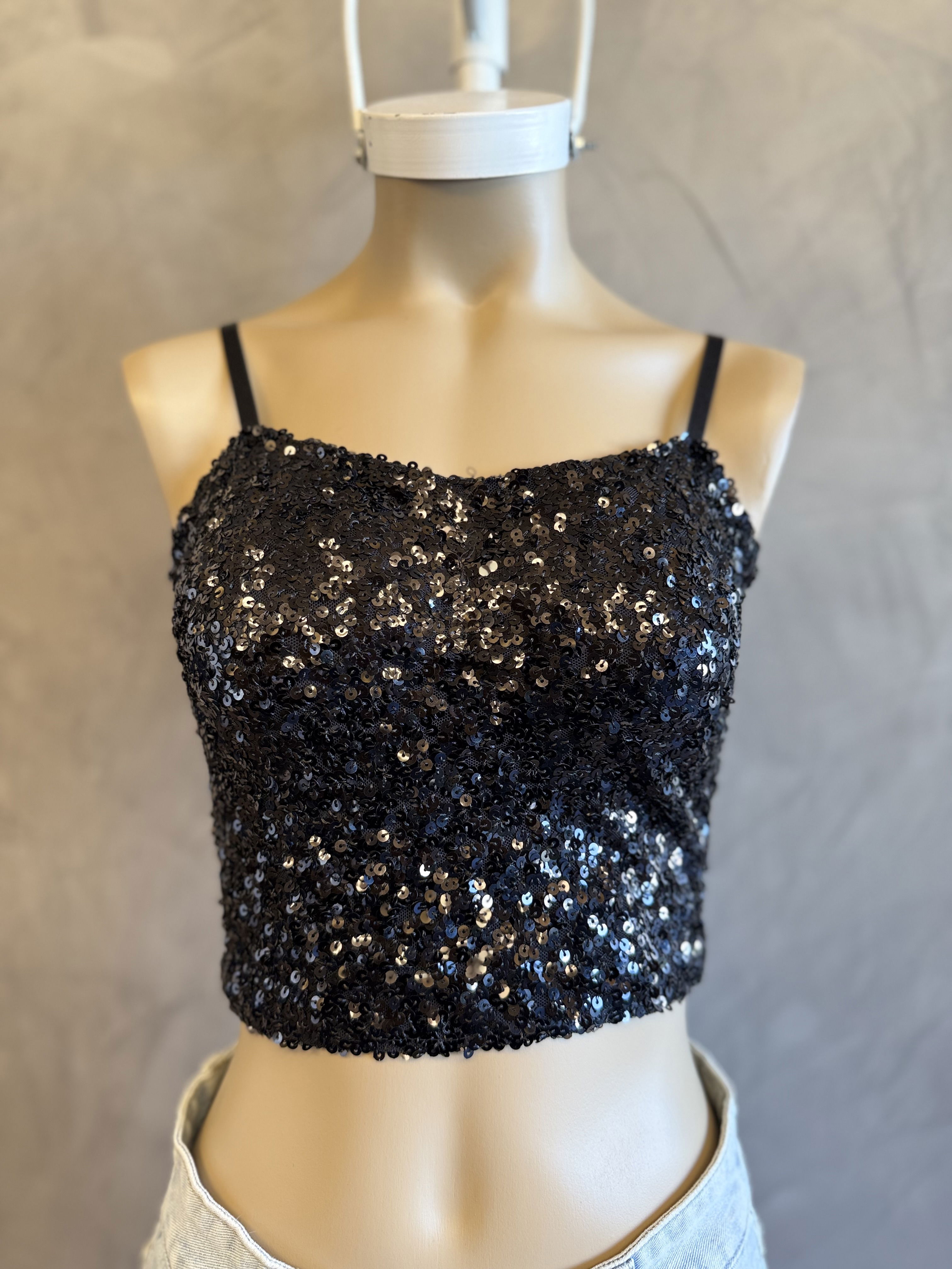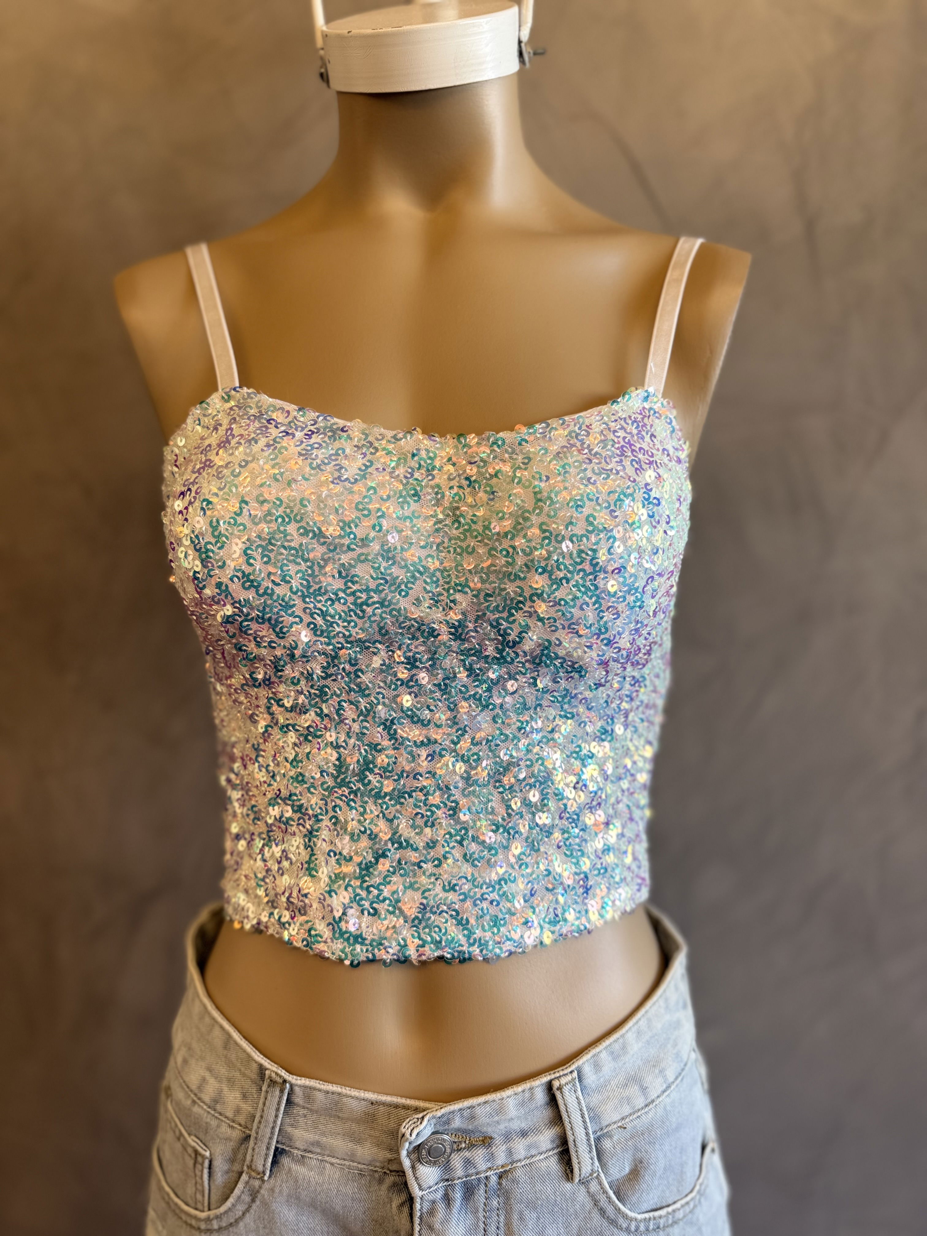 Top de lentejuelas, diseñado para brillar en cualquier ocasión. Con tiras regulables que garantizan un ajuste perfecto y un hilo elástico en la parte posterior para mayor comodidad, este top combina estilo y funcionalidad. IMPORTADO!