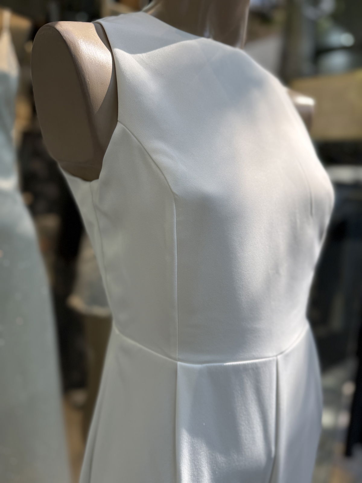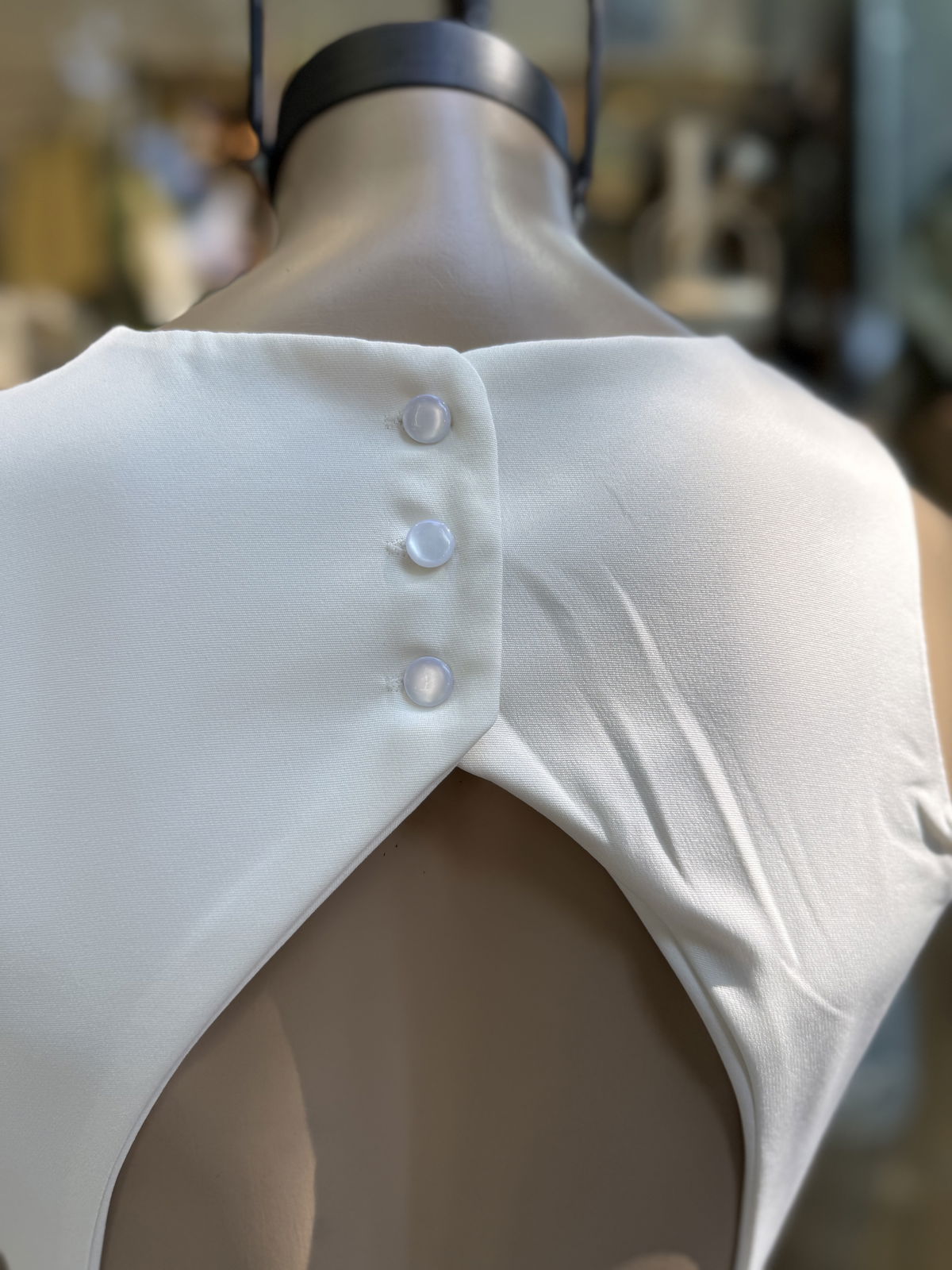 Cuenta con botones atras, con una espalpa semi abierta y con cierre invisible.